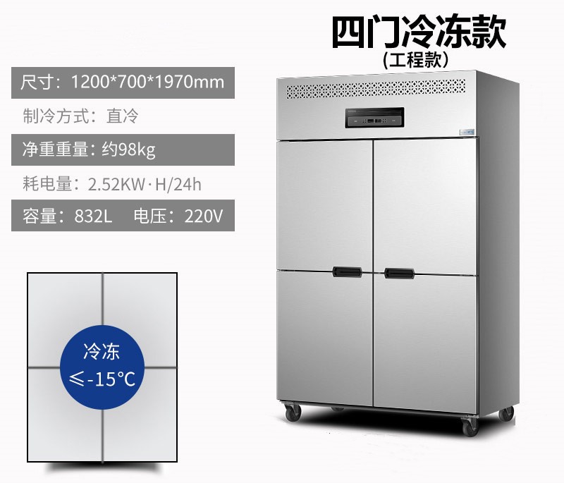 • 四門商用冰箱廚房餐飲冷藏冷凍冰柜4門立式冷柜大容量工作臺