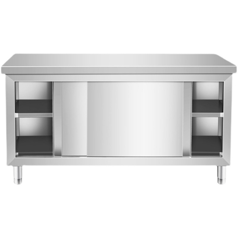 • 不銹鋼家用拉門工作臺廚房桌打荷操作臺儲物柜桌子帶拉門案板